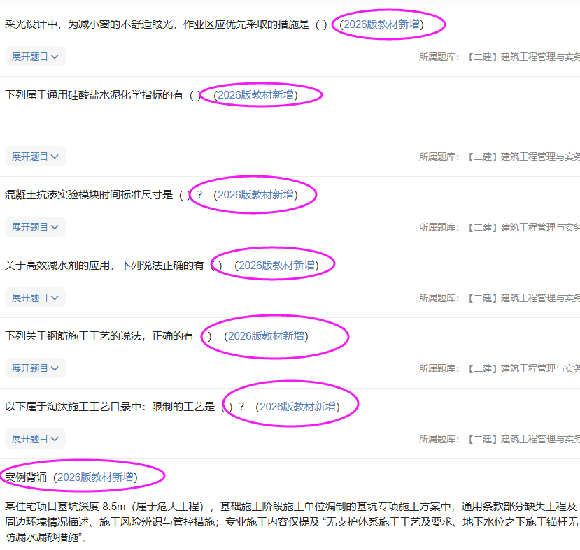 ① 按照《2026版二建教材》新增知识点 新增题目