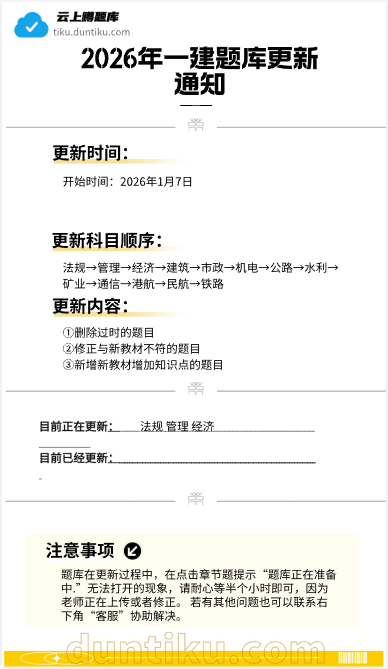 2026年1月7日题库2026版一级建造师 蹲题库更新详细: